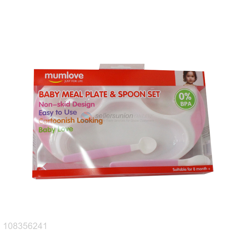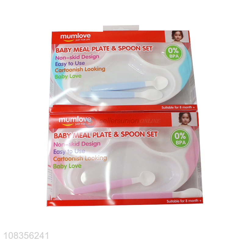 Hot selling non-skid food grade baby meal plate and spoon set