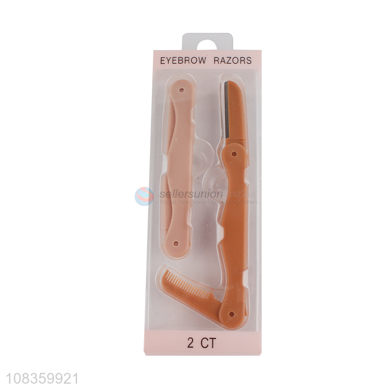 Good quality 2 pieces eyebrow razors eyebrow trimmer with eyebrow brush