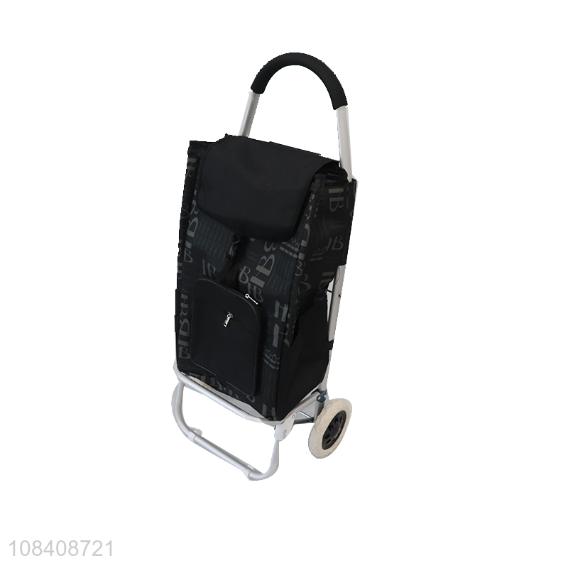 Low price black polyester cloth bag trolley shopping cart