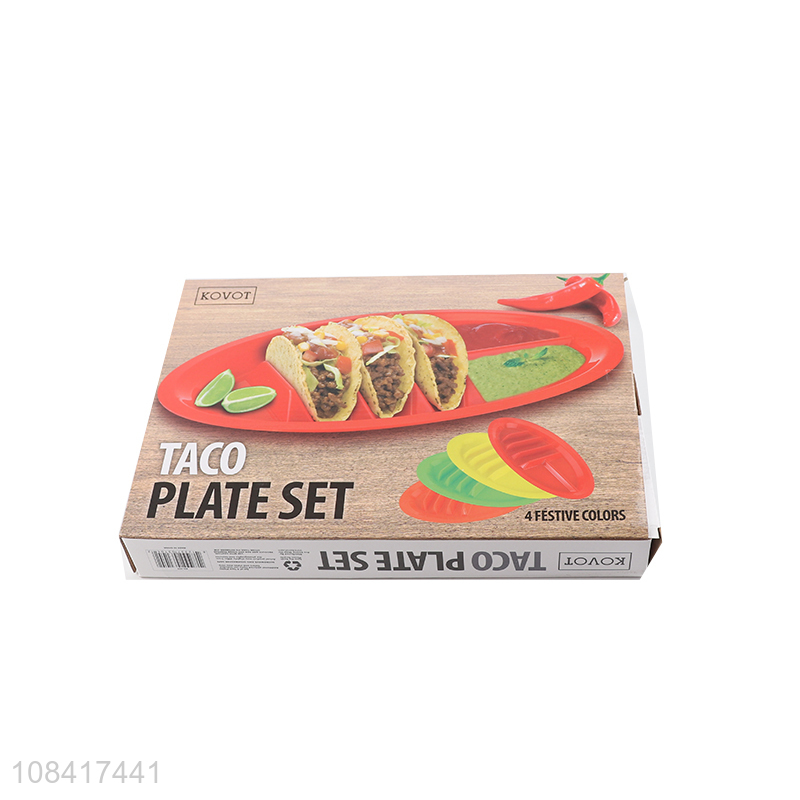 High quality 4 pieces colored taco plate set food grade plastic plate set