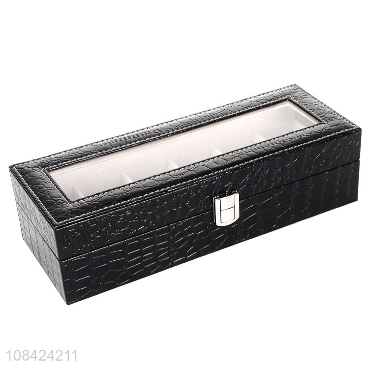 Wholesale 6 slots watch box crocodile grain pu leather watch case