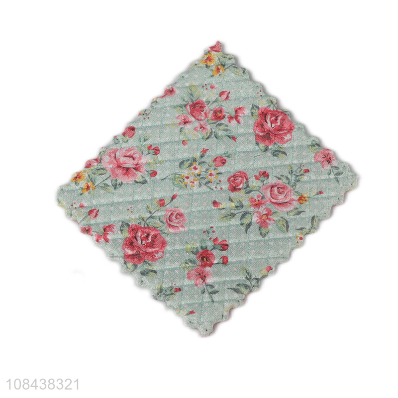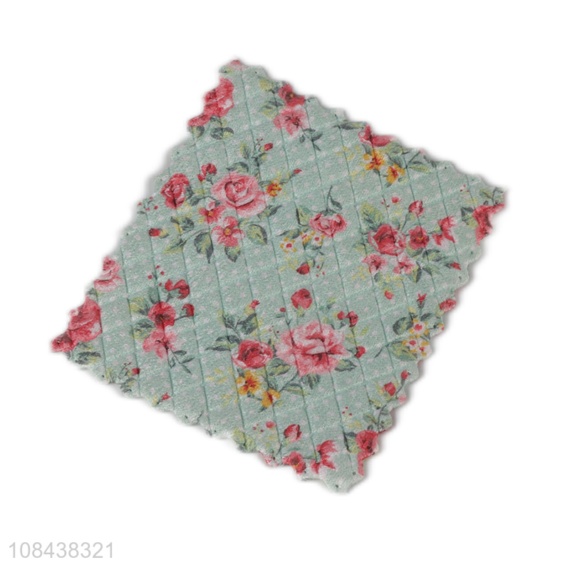 Hot sale flower printed abrsorbent microfiber cleaning towels kitchen cleaning cloths