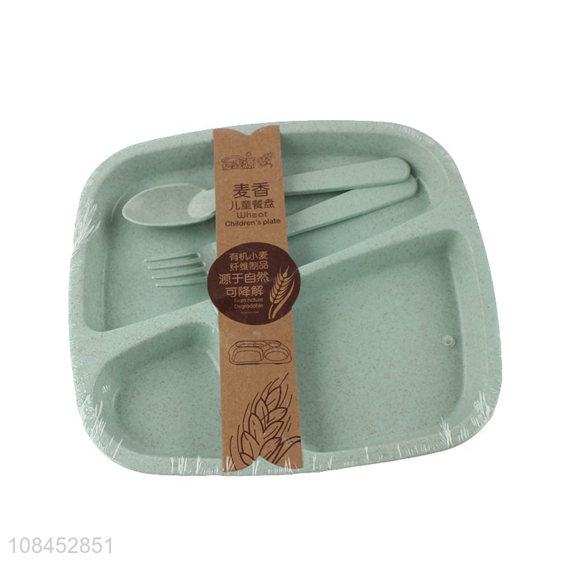 Yiwu wholesale green plate kids wheat straw dinner plate