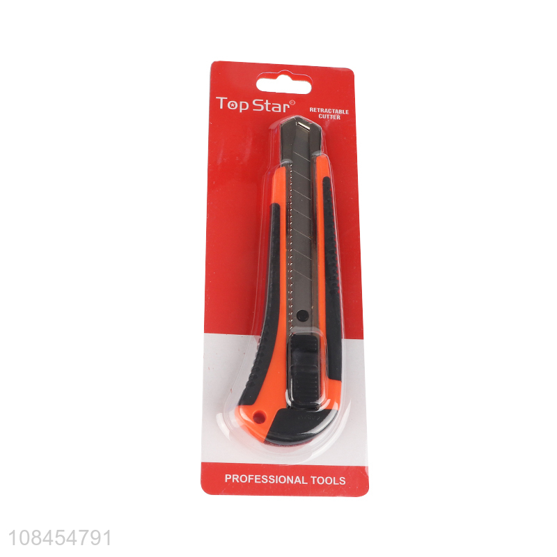 Custom logo rubber coated stainless steel retractable box cutter utility knife