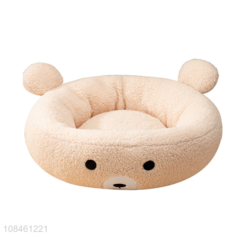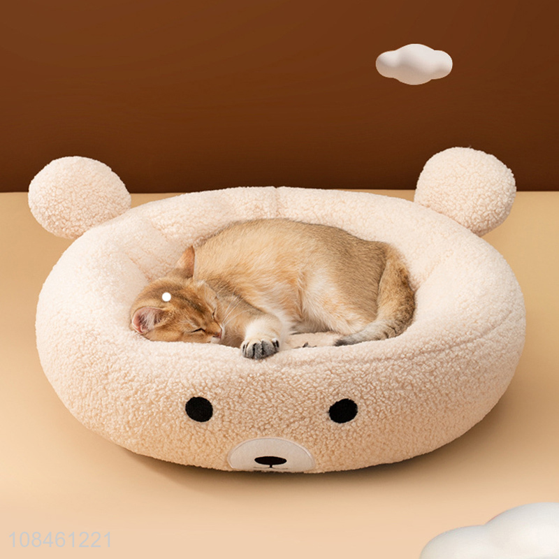 Good quality cartoon bear design imitation lamb wool cat bed pet nest