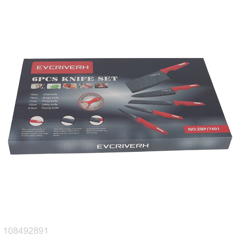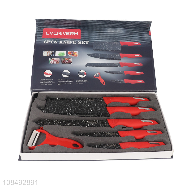 New style 6pcs maifanite stainless steel kitchen knives and peeler set