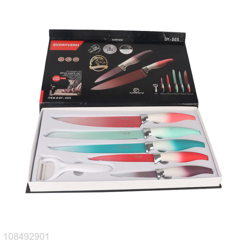 Wholesale 6pcs gradient color stainless steel kitchen knives and peeler set