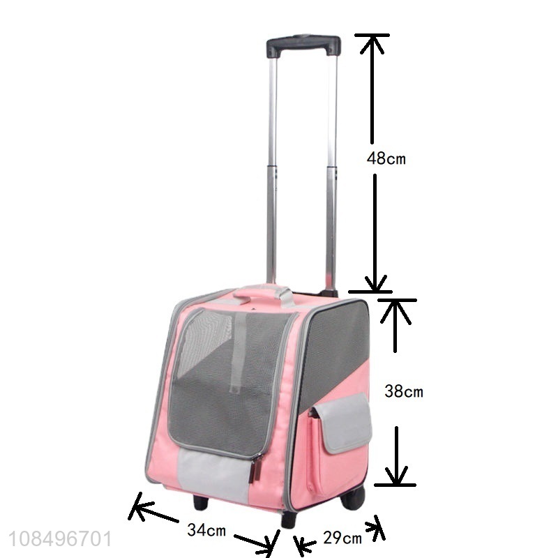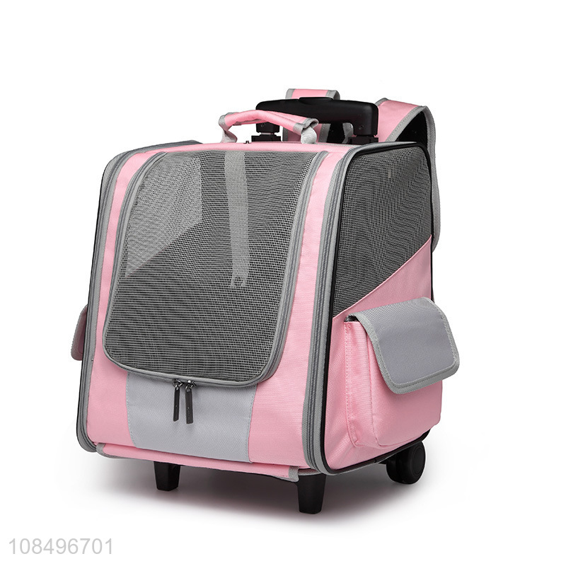 Factory price pet cat backpack pet rolling carrier with double wheels