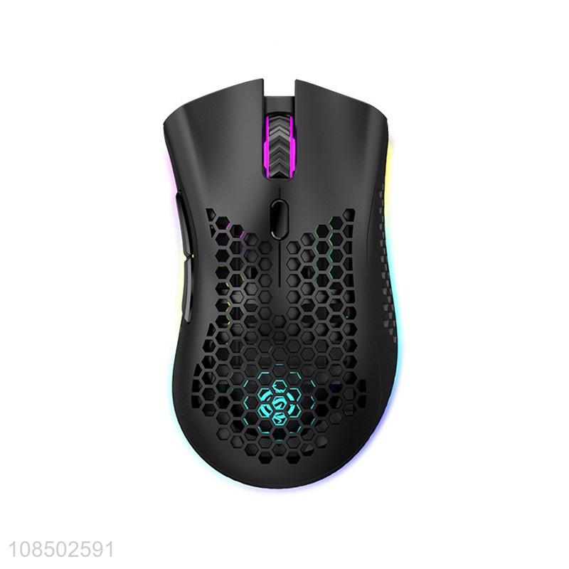 Wholesale honeycomb design 6 buttons RGB backlight 2.4G wireless rechargeable mouse