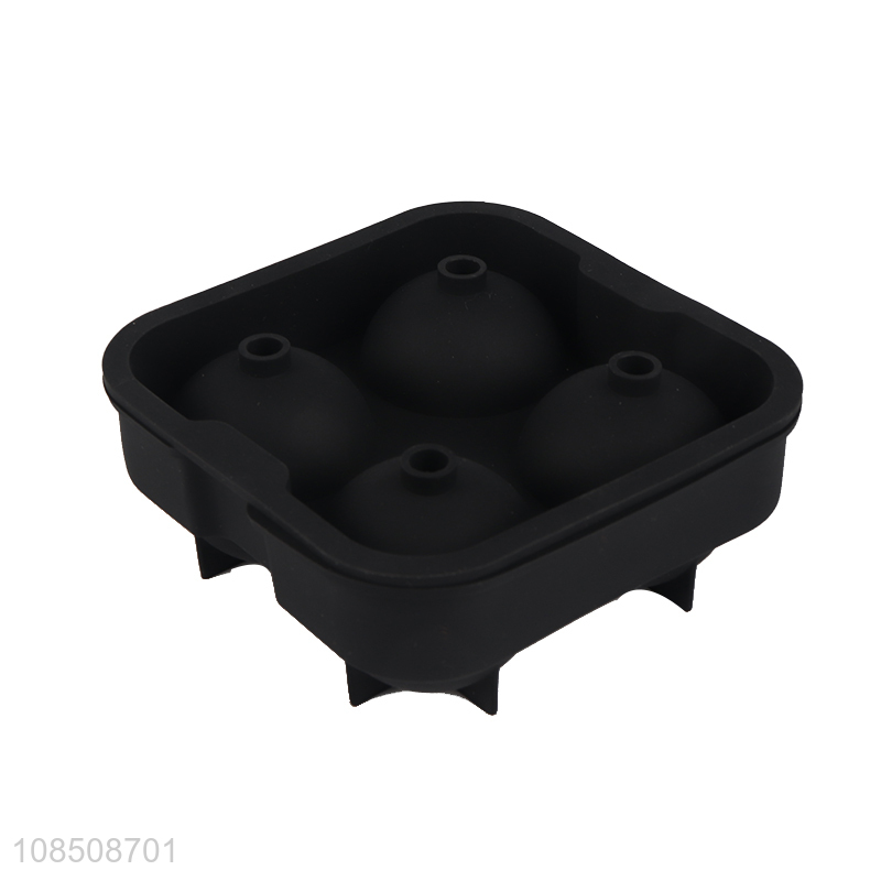 Wholesale reusable 4-cavity sphere ice mold silicone ice ball tray