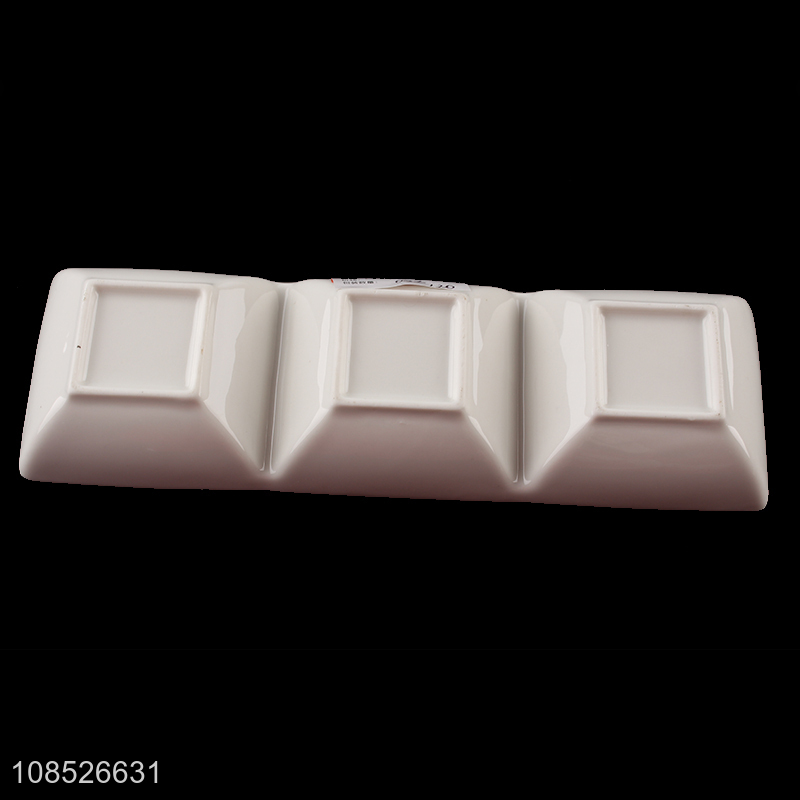Wholesale 3-compartment ceramic plate appetizer serving tray