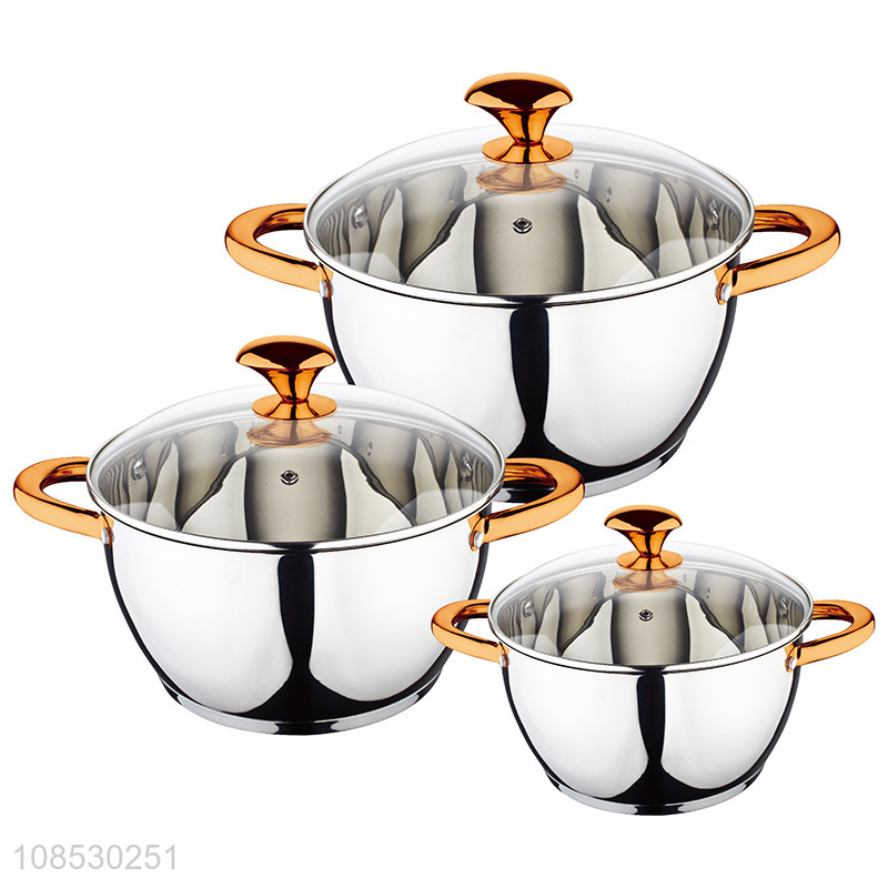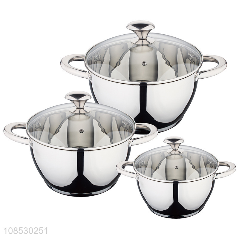 High quality 3pcs stainless steel soup pot set with explosion proof lid
