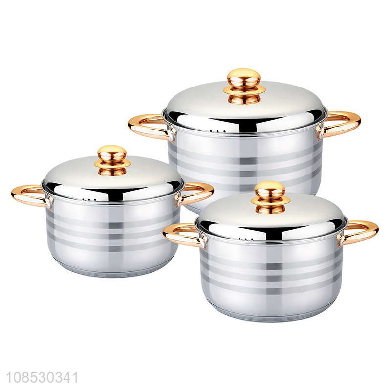Best quality 3pcs thick food grade stainless steel soup & stock pot set
