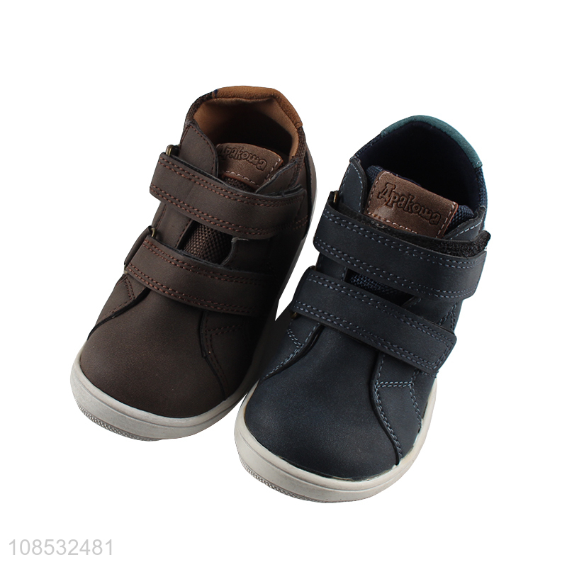 High quality anti-slip pu leather hook & loop board shoes for kids