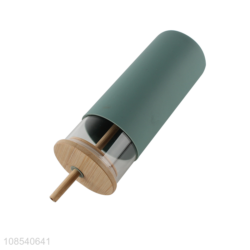 Hot selling glass water cup straw drinking cup with bamboo lid