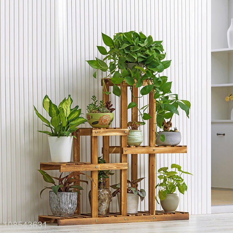 Wholesale 4-tier solid wood plant stands for indoor outdoor decoration