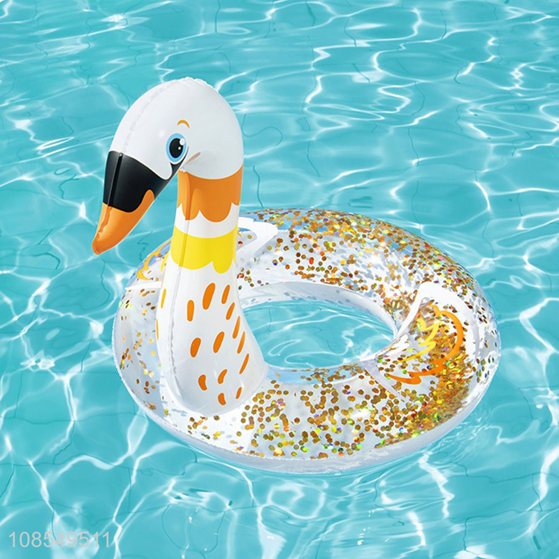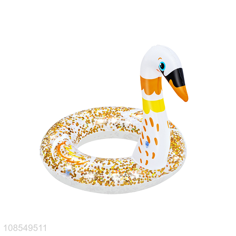 Hot selling inflatable pool floats sequined swan swim ring