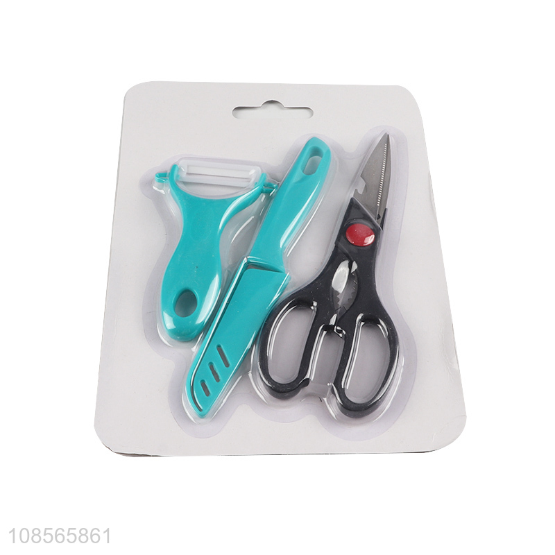 Wholesale 3pcs kitchen knives set scissors paring knife peeler set