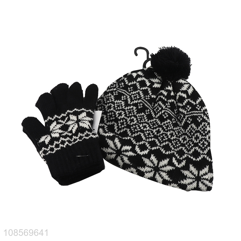 Factory direct sale winter knitted beanies hat set with gloves