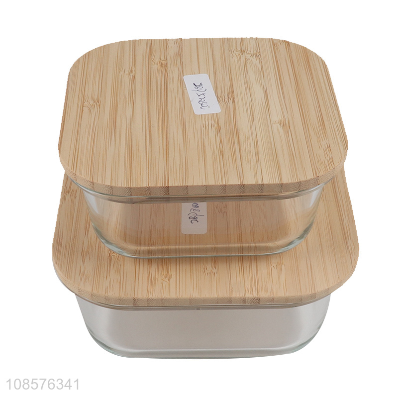 Best selling 3ps bamboo lid glass preservation box food crispers
