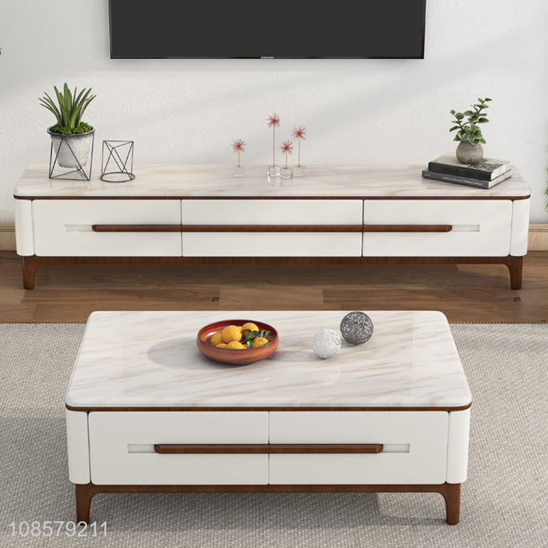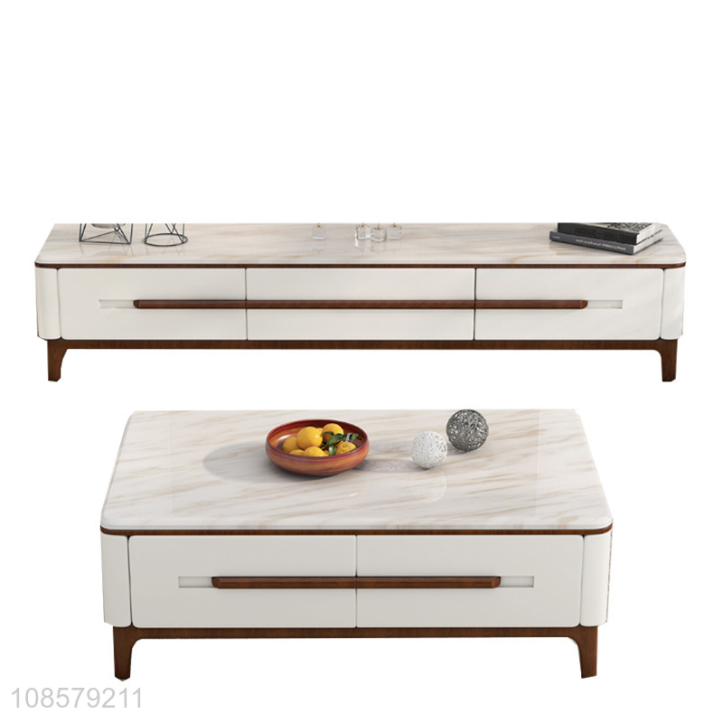 Wholesale living room furniture marble end table and TV cabinet set