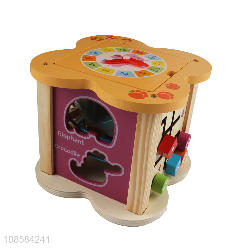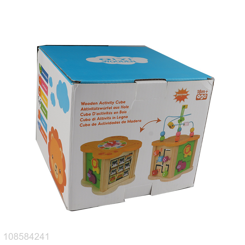 Wholesale 6-in-1 wooden activity cube montessori toy for 18+ months