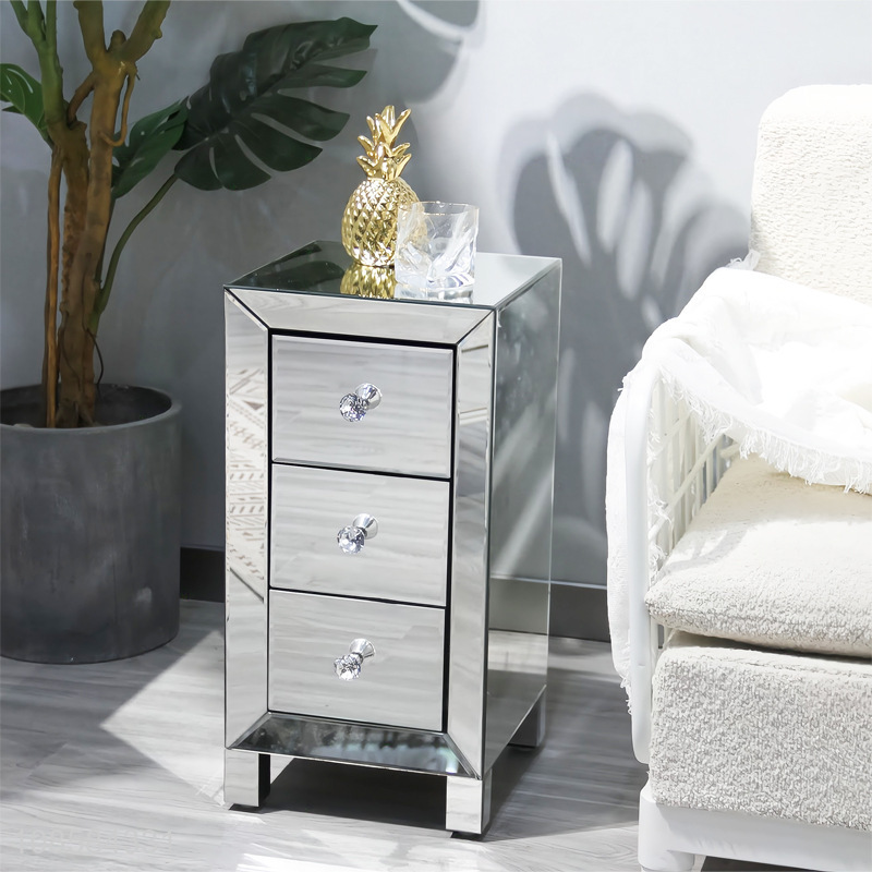 China factory mirrored bedroom furniture bedside table nightstand