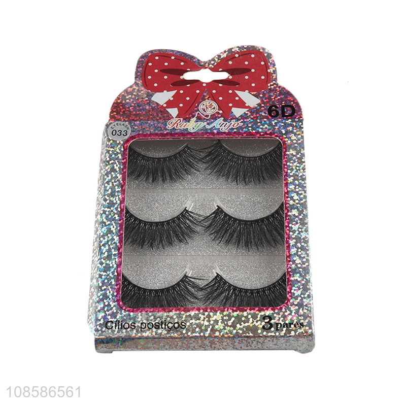 Private label 3 pairs 6D natural look fluffy false eyelashes