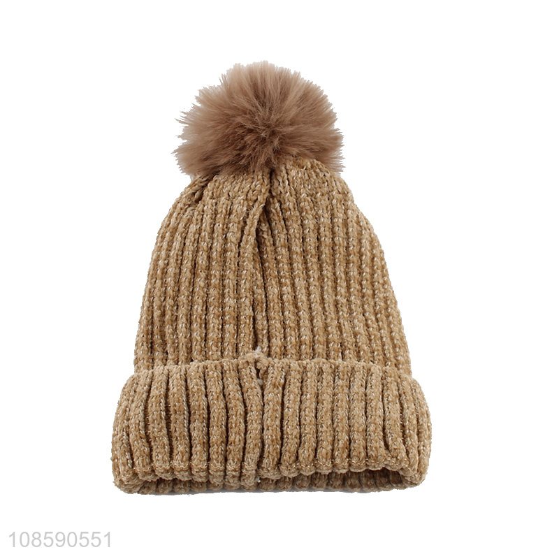 Wholesale winter hat windproof fleece lined chenille beanie hat