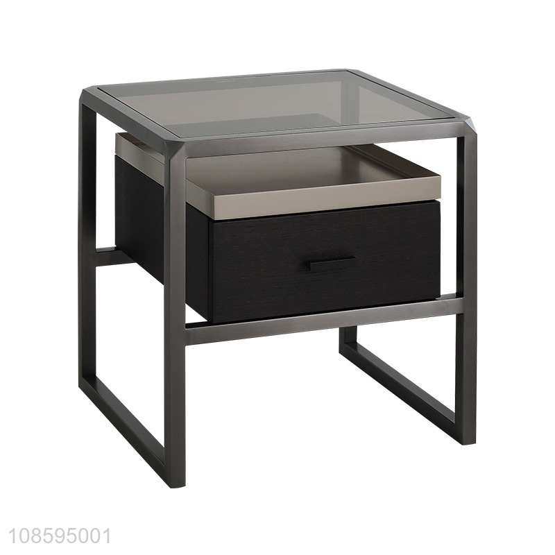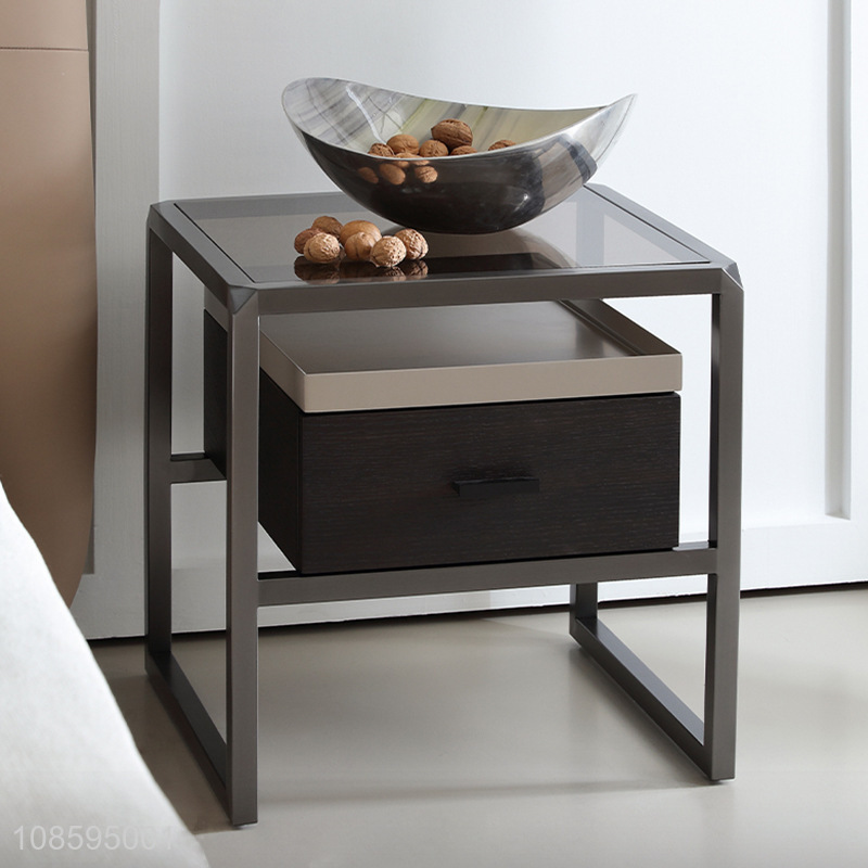 Factory supply glass bedside cabinet bedroom bedside storage cabinet