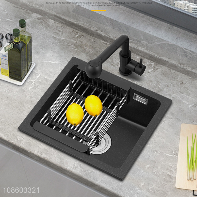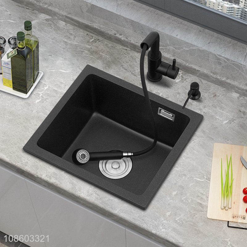Good quality single bowl quartz stone kitchen sink set with faucet and drain