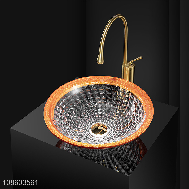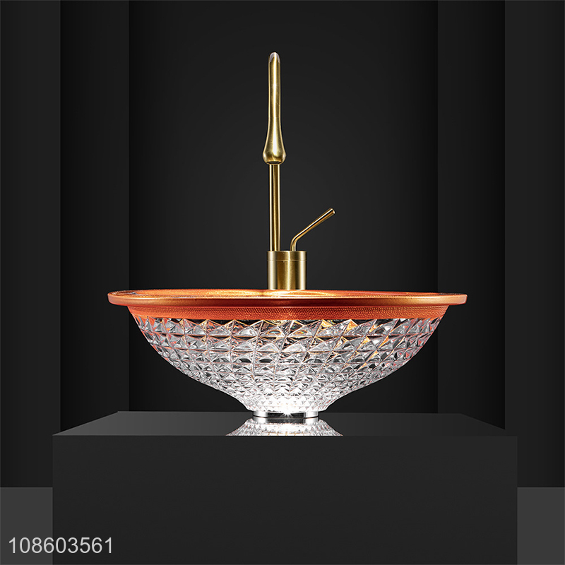 Factory supply glass bathroom vanity vessel sink with faucet