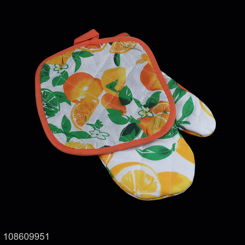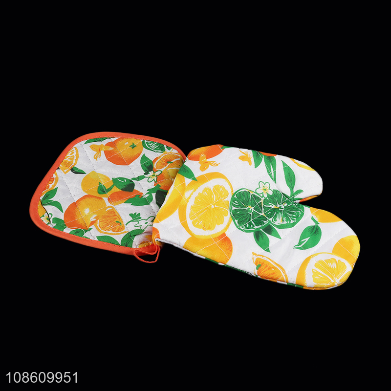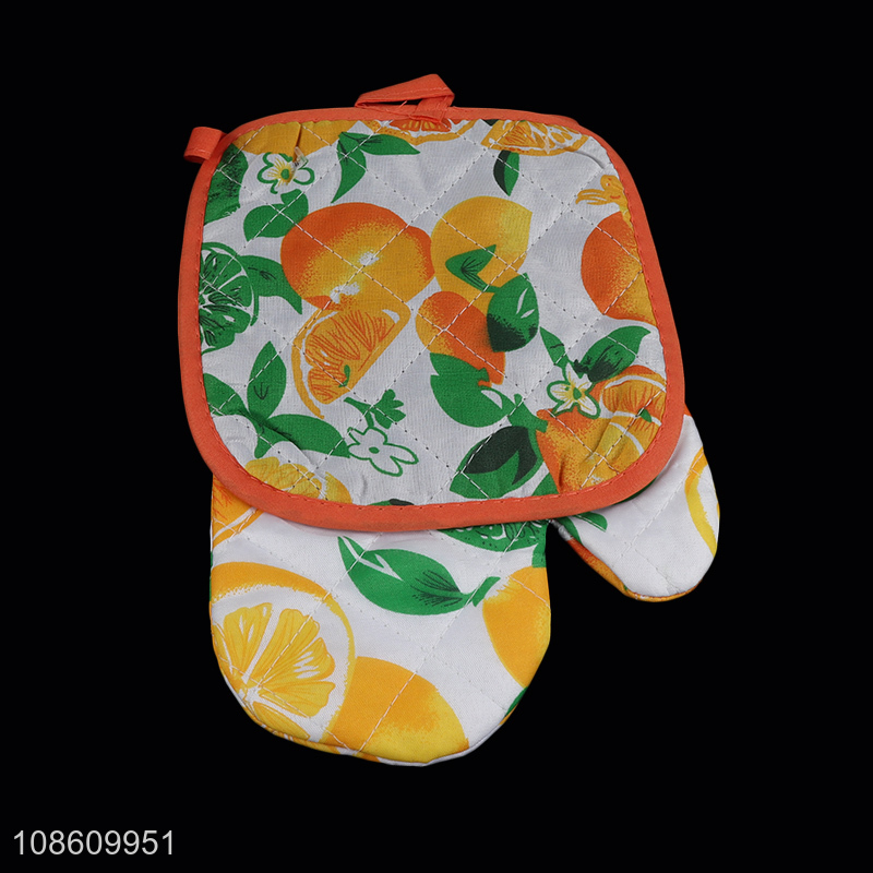 Wholesale printed microwave oven mitt and pot holder set kitchen accessories