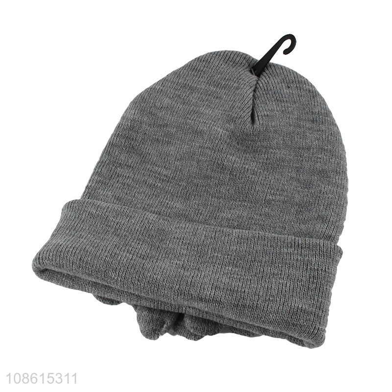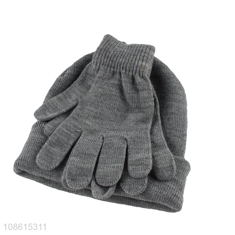 Hot selling grey thickened men hat gloves set for outdoor