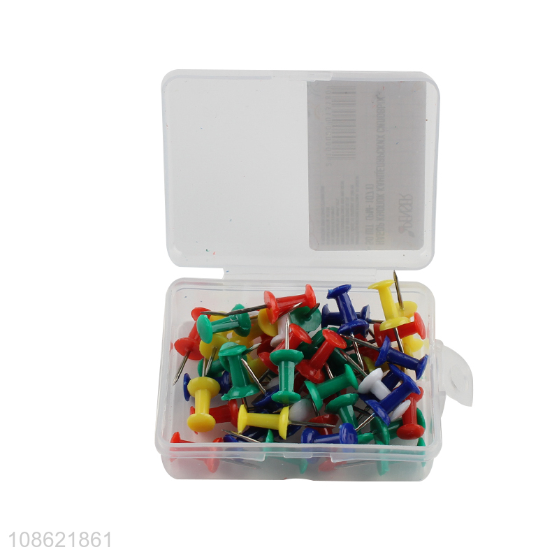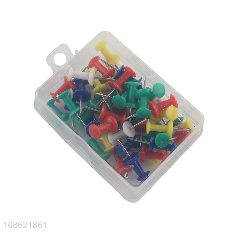 Good quality 50pcs multi-colored push pins thumb tacks office supplies