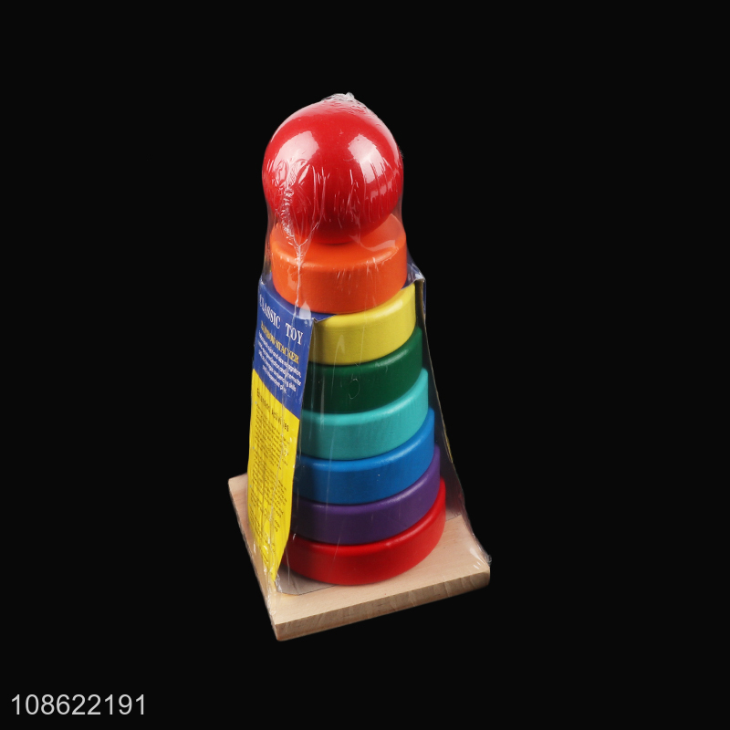 Hot sale wooden stacking tower rainbow tower wooden stacking toy