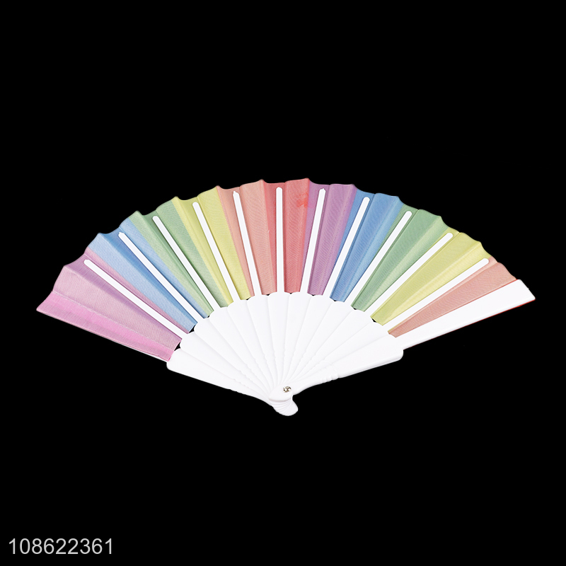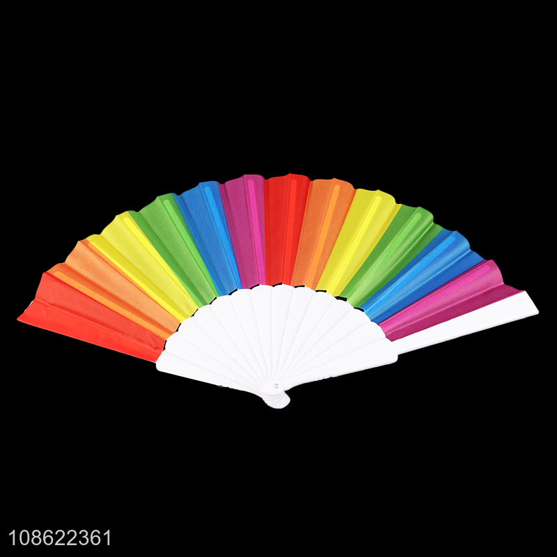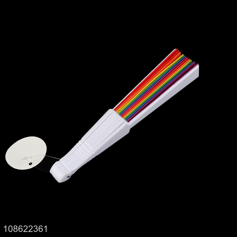 Factory supply rainbow color plastic folding hand fan for sale