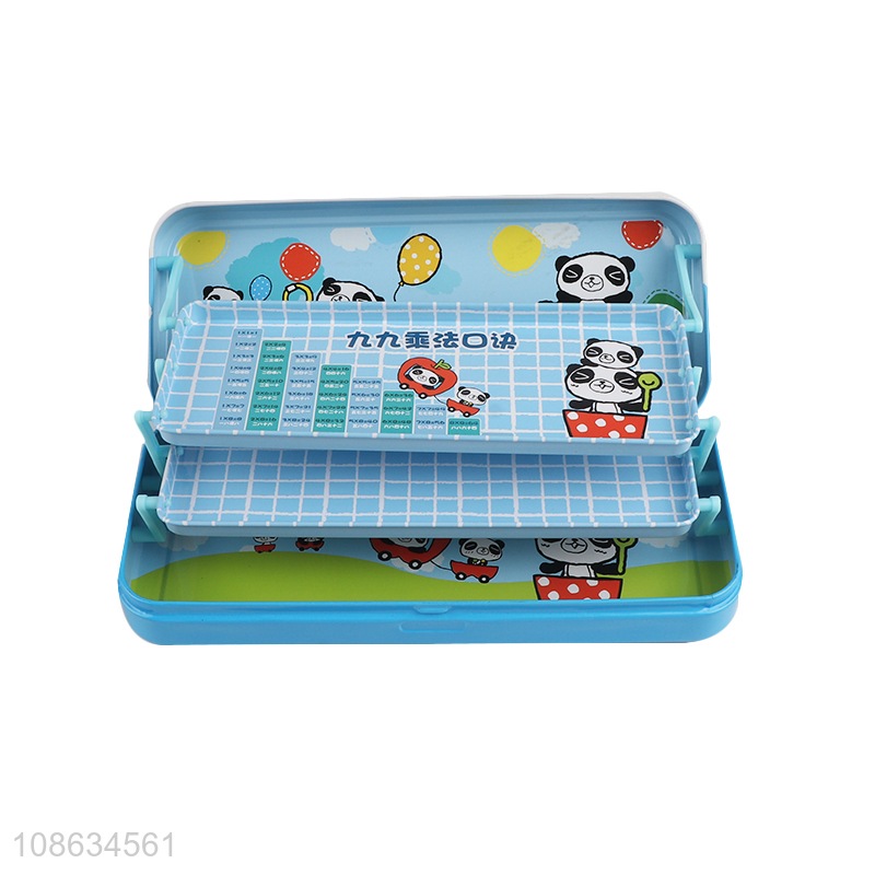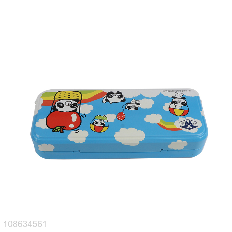 Good quality cartoon panda printed tinplate pencil case for kids