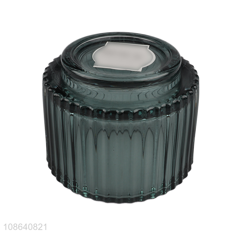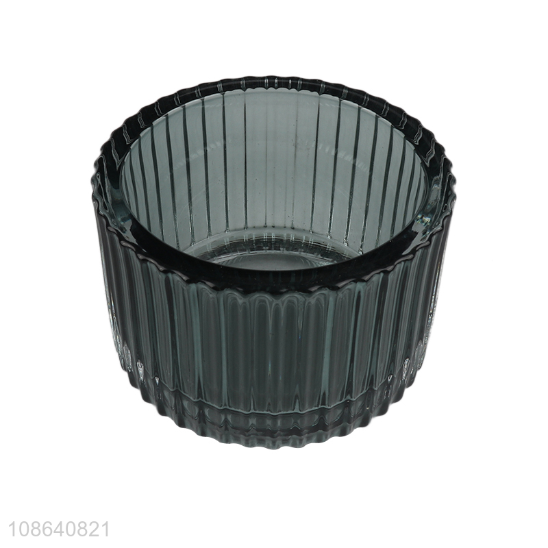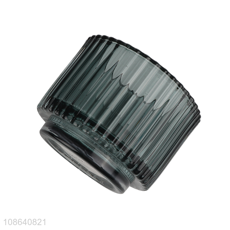 Hot selling exquisite ribbed glass candle holder for decoration