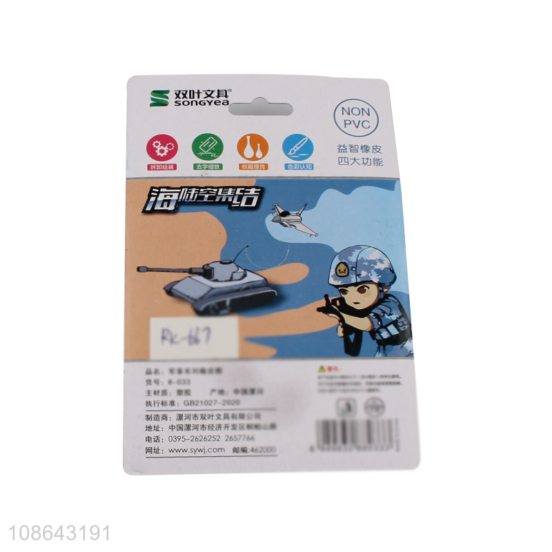 Factory price military series eraser set for kids boys girls