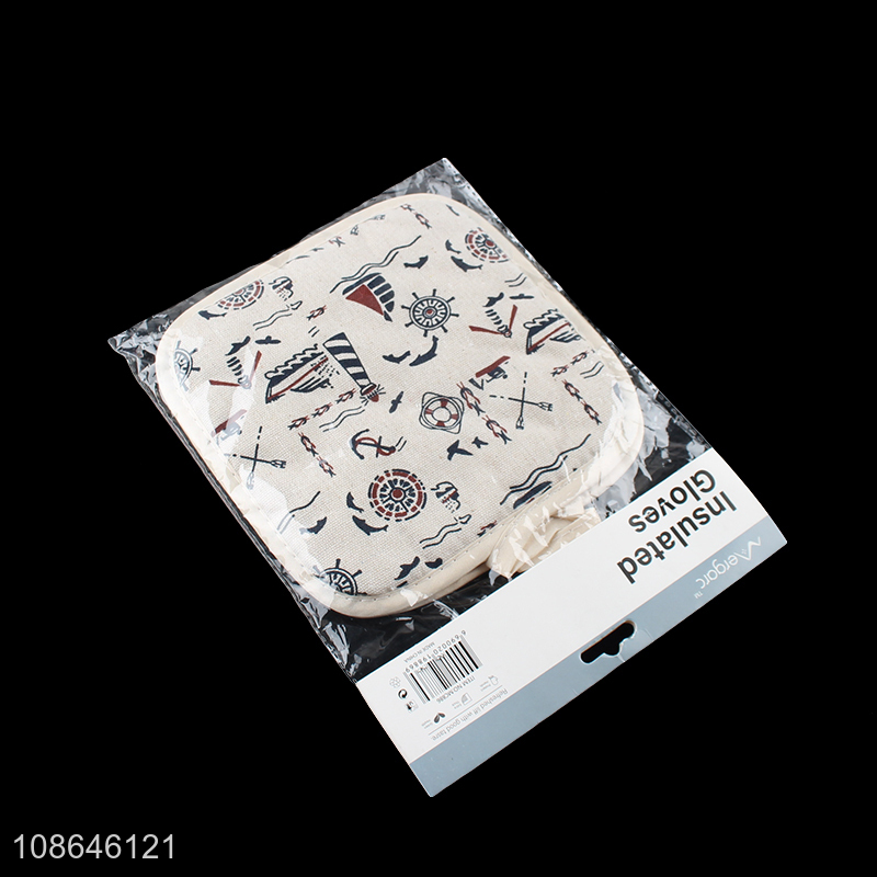 Custom logo cotton oven mitts and pot holder sets for baking grilling
