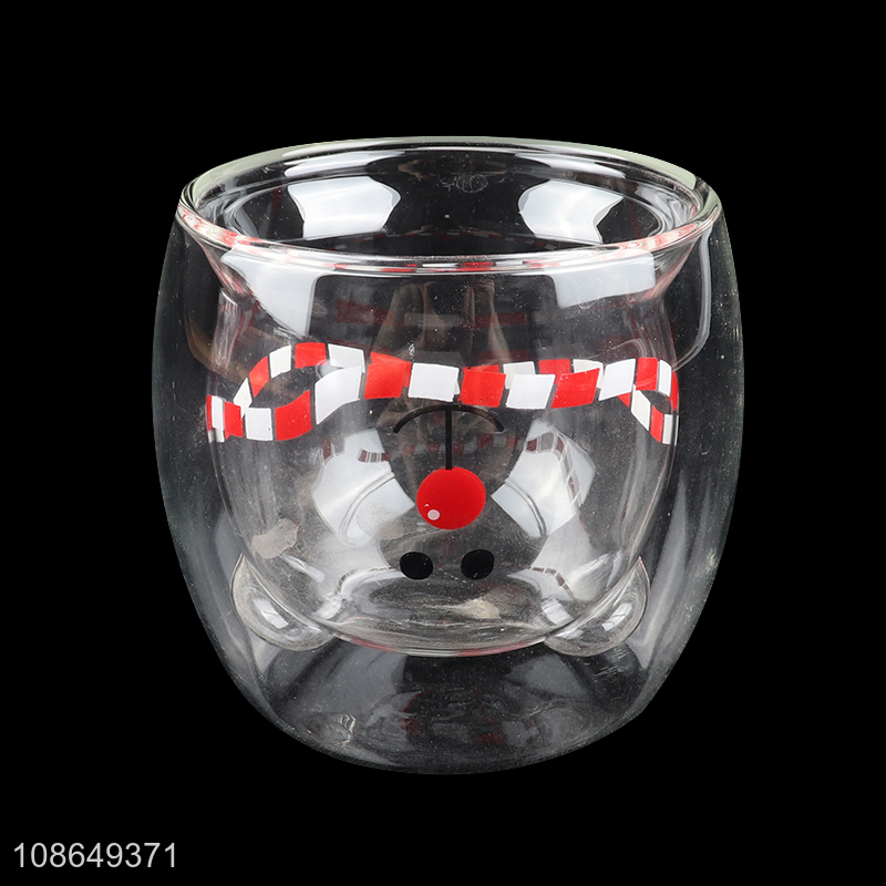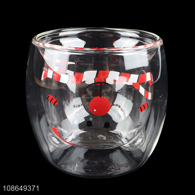 Hot selling cartoon bear glass double wall water cup water mug