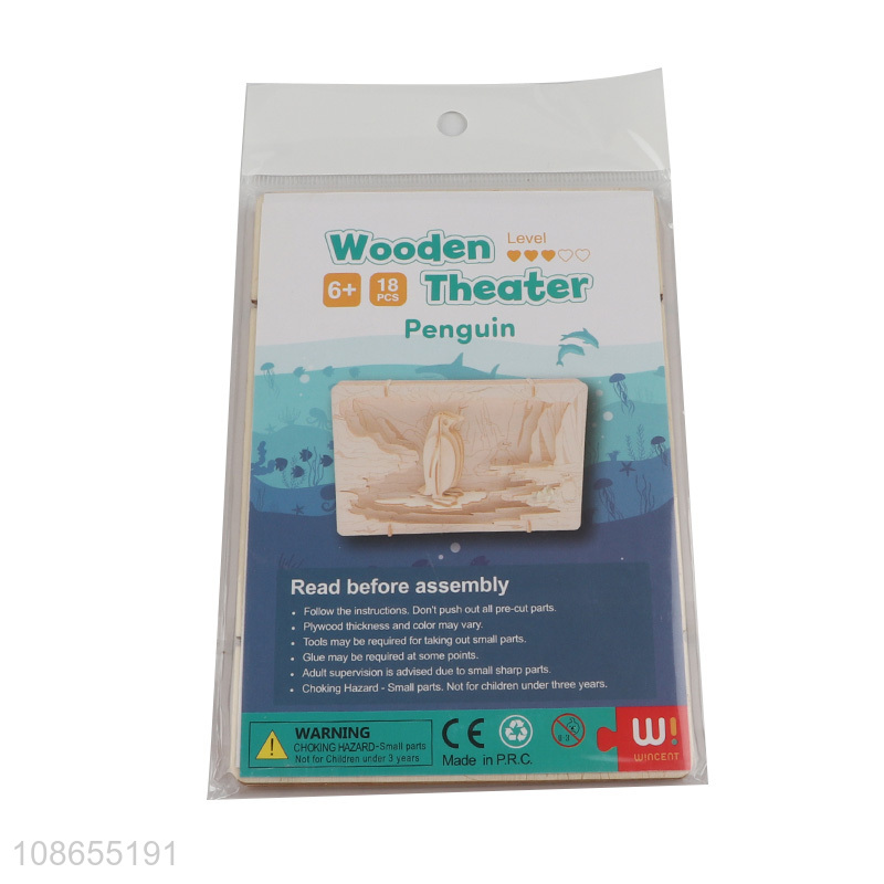 Latest products wooden theater penguins series 3d puzzle games toys