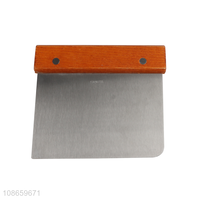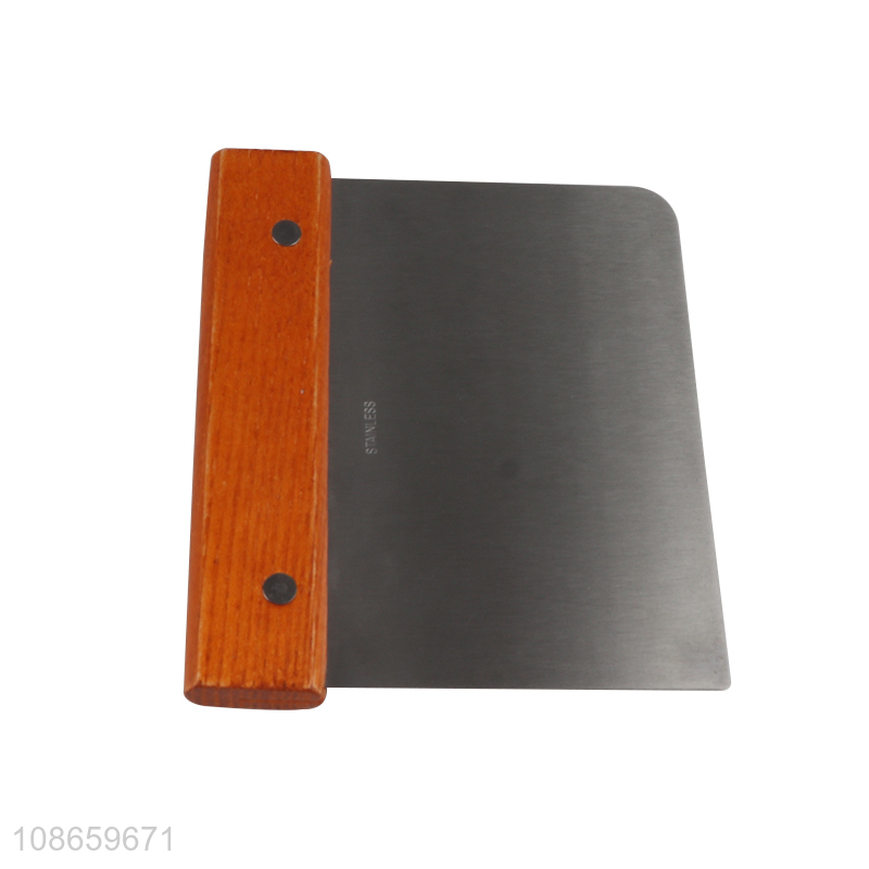 Wholesale stainless steel dough scraper with wooden handle for baking