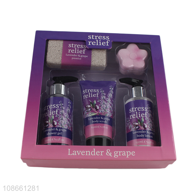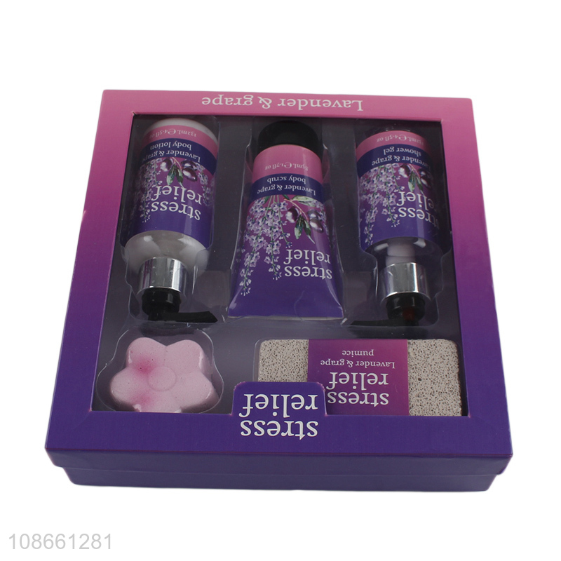 Online wholesale lavender body wash body lotion set with bath pumice