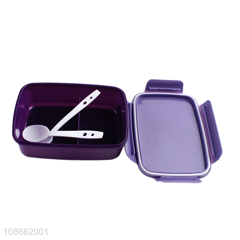New product rectangular cartoon plastic lunch box with cutlery for kids