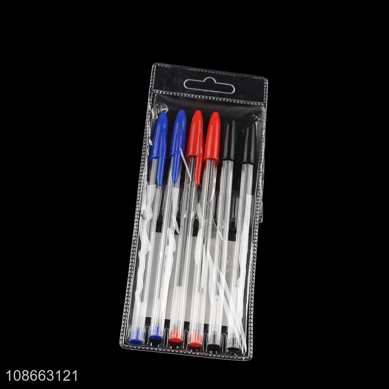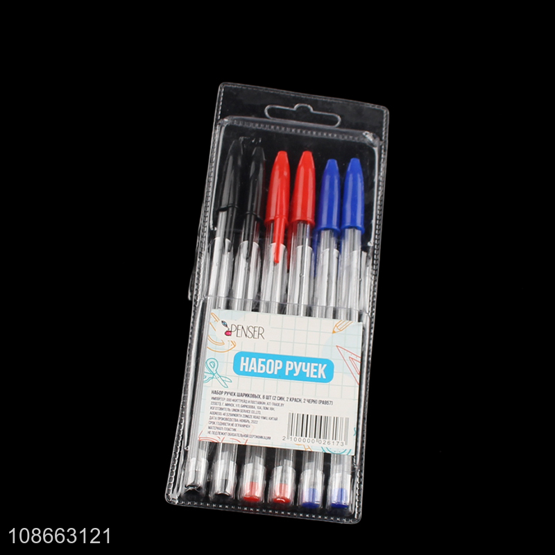 Yiwu market 6pcs plastic ball-point pen set office school stationery