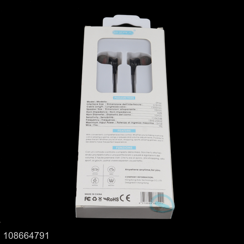 Wholesale 130cm 3.5mm jack wired stereo earphones in-ear headphones