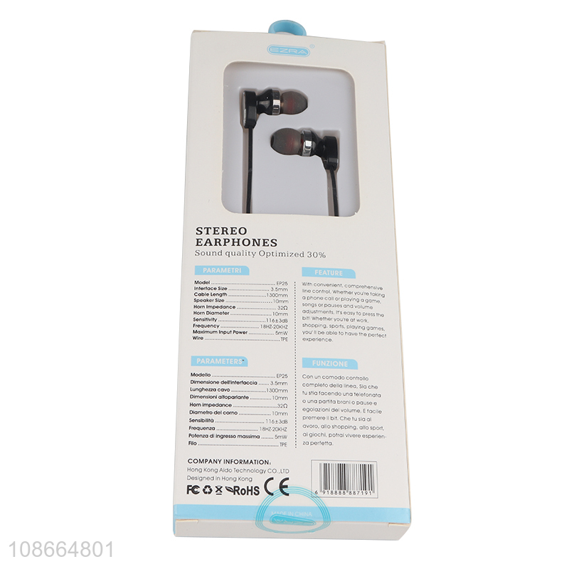 Wholesale 130cm stereo earphones high sound quality in-ear headphones