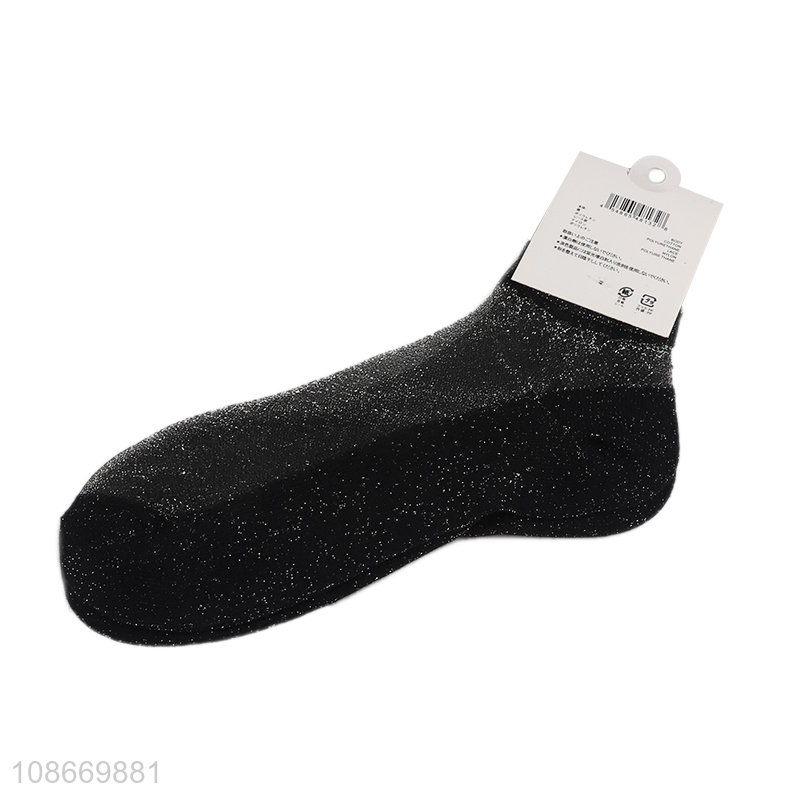 Online wholesale stylish women ankle socks shiny silver yarn socks